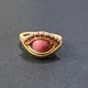💫这款手工金属绕线戒指,以温润金线如眼眸般环绕一颗天然蔷薇石(Rhodonite)珠子为核心,设计成独特的“眼形”结构,周围点缀细小金珠,宛如蔷薇绽放的眼波,捕捉石头粉红光泽的温柔脉动。