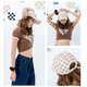 怪可爱系列 坏坏熊棋盘格弯檐帽