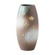 💟本件作品呈现信乐烧侘寂之美,绿色自然釉、柴烧赤褐色、焦痕充分显现自然简朴的特色。然此件作品同时呈现细致手艺,刻痕呈现的枝叶、撒落的自然釉象征露珠、金箔漆描绘的花瓣,无处不透露着细腻精心。