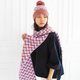 ◑此次的半月织纹围巾系列全部都是双面双色的设计,穿戴上呈现一面活泼双色另一面沈稳单色,适合搭配各种造型!