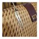 设计巧思: 提把与包身以别致的V形金属饰片连接,