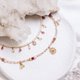 粉碧玺、草莓晶、淡水珍珠、葡萄石、黄铜镀18K金