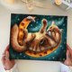 这幅充满奇幻色彩的橘猫画作,采用专业压克力颜料绘制于已绷好的纯棉画布上。这件艺术品独一无二——看那它们多么快乐地倚在起司月亮上,用毛茸茸的爪子逗弄着魔法鼠标 :) 这幅画作原创且细节丰富,充满精灵般的魅力。主题更是独一无二。
