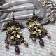 材料:合金配件,捷克琉璃珠等等 尺寸:约4.5cm*2.5cm . *捷克琉璃珠为仿复古制作,每颗花纹颜色分布不一,会有边缘不平整/微小气泡情况 *手工制品会出现位置微不同,颜色不均等等的个体差异