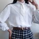 复古米白色衬衫,系带蕾丝领长袖,浪漫风情
