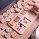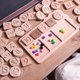 如果我们用蒙特梭利教材简单解释这个数学玩具,我们会发现玩具都是数字的形式。所有方形和圆形木制数字在数学玩具板上都有查找和插入插槽。平方数是交易数。整数仅用于运算结果。底部有一个室用于每个过程和结果。在玩游戏的同时,学习加减法,以及上面的数字,将产品中的绒球或类似可数数的小玩具放入运算室和结果室,在学习中度过一段有趣的时光。加减。