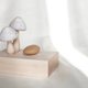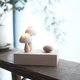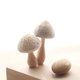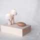 使用纸浆及加入些许桧木木屑表达蘑菇的柔和及质地。与木头茎部及底座结合,呈现其温润。