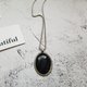 黑曜石(英文名:Obsidian)是一种常见的黑色宝石、火山晶体,又称“龙晶”、“十胜石”,是一种自然形成的二氧化硅,通常呈黑色。黑曜石自古以来一直被当做辟邪物、护身符使用。我们选取了麻花边的宝石底托来镶坎,浓浓的中国风,这款非常大气,可以搭配毛衣,衬衫,外套都可以,宝石表面光滑,颜色深邃,古银色的麻花边搭配黑曜石,碰撞在一块,显得非常复古。支持定制,有任何想法可以事先联系设计师。
