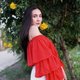 Red 手工棉质 Bardot 层叠荷叶边短版上衣