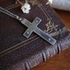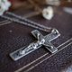 古董法国黑银花卉十字架耶稣基督教会宗教项链 A187