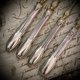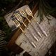 这一组来自19世纪末的法国甜点前菜叉,手柄刻有象征纯银的“密涅瓦印记(Minerva)”——代表法国银器工艺的正统印记。