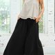 散状大宽裤 / 双层纱 黑 - 女装长裤 - 棉.麻 黑色