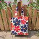 棉手提包双面使用。您可以每天更改为您喜欢的模式。坚固且缝制精良的包包,适合日常携带。打开袋方便携带,无拉链。