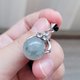 【亲翠】天然翡翠 冰晴飘花13mm圆珠纯银石来运转皮绳锁骨链