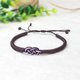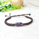 这款手绳以2色组合,简单大方,全条手绳以九乘金刚结,中间配上一个双钱结组合而成,相传戴上金刚结手绳能带来平安和好运,而双钱结则可带来财富。