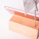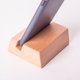 实木制作而成的手机座,稳固的底座与倾斜开口的设计,
