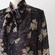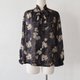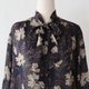 日系日本制复古花朵领结宽松长袖深蓝色雪纺古着衬衫-T055