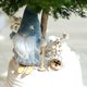 小精灵坐在雪地里的长椅上开心的摇晃着双腿,