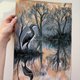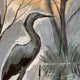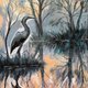 在这件作品中,鹭鷀化身为寂静的守护者。它的姿态诉说着耐心,以及从细微之处发现美的能力。水中的倒影像征着二元性:现实世界与梦境世界。它所站立的草地,借由灰与橘色的斑斓笔触点缀,将大地与天空的色彩巧妙链接。