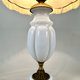 台灯的底座尤为迷人,由晶莹剔透的乳白水晶(Opaline Crystal)精心雕琢而成;这种材质以其细腻柔和的乳白色半透明质感而闻名,点亮灯光时,会散发出一种柔和而梦幻般的光晕。