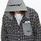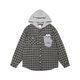 美式正肩格子长袖衬衫/采用混纺抗皱亲肤面料它抗皱保形性强。胸前以贴布绣工艺叠加贴袋,融入联名插画师 matsui的小狗图案,萌趣十足,彰显独特个性与艺术趣味。后帽创意字母签名绣花增添视觉焦点,整体设计将实用性与潮流感巧妙融合,打造出兼具温度与态度的时尚单品。