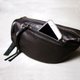 外型以不对称弧形设计,内袋空间可放置雨伞等物品,包款后方则有拉链式收纳空间。肩袋为可拆式,运用金属黄铜钩环制作,可方便组合成侧背与手提包。