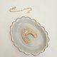 马蹄一直有着幸运与招财的含意,戴上宛如就能接住好运的到来,特别选用粉橘带金丝的绣线当底色,外围再用淡金色的珠绣方式包覆着马蹄,是款充满幸运力量的饰品~