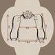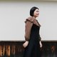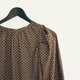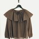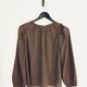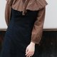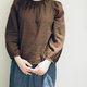 复古大地色花纹,细褶圆领外加荷叶领片,窄肩版型与袖片打褶设计,容易搭配的基本长袖上衣。