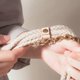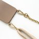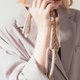 奶霜粉棉料圆绳与皮革、黄铜拼接而成的手机背带,柔和自然元素呈现出波西米雅的浪漫风格