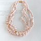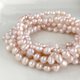 由粉红粉红马铃薯形扁平珍珠以全结串成的长项链。