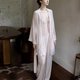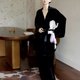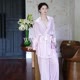 上下分体的套装,兼具华美与得体,短外袍利落洒脱,垂顺长裤勾勒慵懒且高贵的风姿,从卧室到客厅,从私享到社交,你的贵气,无处不在。