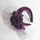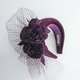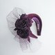 ✤ Padded velvet headband is made out of high quality Italian velvet. Halo hat has intone floral composition covering the right side. Fascinator headband trimmed with birdcage veil is being placed at the back of the head band.