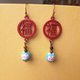 虎眼石招财猫垂坠耳环