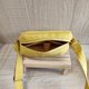 包包主体用芥末黄优质的酒袋布制作,包款的侧身剪裁是有弧度的造型,很雅致,前袋身有一个口袋大小约宽17.5cm*高14.5cm,后袋身也有一个有磁扣似的袋盖口袋,宽约17.5cm*高约14.5cm,里面也有一个置物的口袋,大小约宽17cm*高14cm,整个袋子容量不小,同时可放手机, 雨伞,水瓶,存折,面纸....等 ,外出非常便利.