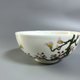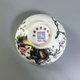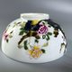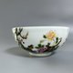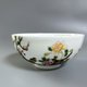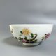 这件碗侈口、深弧壁、矮圈足。器内平素无纹,器外壁彩绘紫粉黄各色盛放牡丹。外壁另一面以墨书写有「春暖花自开 香远倍芬芳」诗句。诗句前有「佳丽」,后有「旭」、「映」共三枚红料印。器底带「雍正年制」二行蓝料宋体字双方框款。