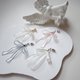 金/银/粉/蓝/绿/紫/红/黑,8款不同色线的手折蝴蝶结,基底为珍珠白