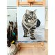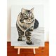 这是一幅原创丙烯画,描绘了一只迷人的长毛猫(缅因猫/经典虎斑猫)。作品完全手工制作,采用丙烯颜料绘制于画布上。