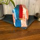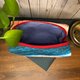 采用日本几何图案布料制作的化妆包 内里选用蓝色布料。这款化妆包容量宽敞,能收纳许多物品。