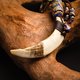 本商品以仿真山猪獠牙结合现代仿古五金、线材等素材,呈现文化性精致饰品的样貌,可配搭原住民传统服装及现代衣物,展现独特的个人品味。