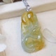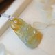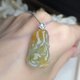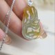 •色仙、饱满,看这种水就知道是天然无烧,淡淡的晴底,有黄家绿感,冰透的像胶块,还能透字,无烧黄翡是越来越少、越贵,光裸石都买不到的价格,懂货的闭眼就好收了