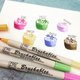 内容物说明:双色软笔刷麦克笔四色1入 注意事项: 请注意,任何双头笔必须放置于在水平位置, 如果他们没有正确放置,将会导致其中一边变干燥及不可使用。 本商品为一次性抛弃型产品,不适合自行灌墨。