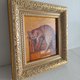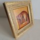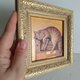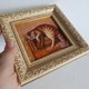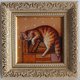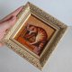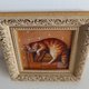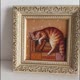 图片尺寸为 3.9*3.9 英寸(10*10 厘米)。猫是用油彩在金色背景的纤维板上画的。带框。