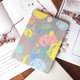 这款三折笔记本式软壳 iPad 保护套采用自由绘制的粉彩涂鸦和猫咪图案,并配有 Apple Pencil 保存隔间。