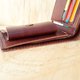 短夹主体使用植鞣革手染,内外皮革均同色,呈现商品一致性