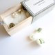 ガーゼを敷いた台に刺し、標本のようにシンプルな箱に入れました。