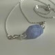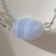 本作品为天然蓝纹玛瑙与透明白水晶组合的手工吊坠,随附一条银链,可直接佩戴。