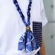 人手编织腰果花牛仔布蓝染拼布颈绳