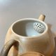 这把瓷土柴烧壶,是没有上釉的纯柴烧。表面自然的雾白渐层,从浅米色到焦糖色,就是柴火慢慢烧出来的颜色。