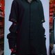 为了让穿着活动上更加舒适,版型以筒状且Oversize的视觉轮廓为基底,但在侧面剪接与袖子接合处有着我们精心设计的小巧思:侧面剪接以直在线到袖子接合处时会渐渐弯曲收窄,让整体视觉保持着Oversize的宽松、反骨感但也能带出一股修身且不输正式衬衫的经典氛围,在设计上‘破洞’是在Grunge Art 风格里常出现的穿搭元素。此款衬衫我们巧妙地将破口概念融入衬衫设计里,在袖子手肘处以及背后腰间都解构出破口的造型,并不是单纯的让布料破坏处理,而是精致的在破口边缘压上电绣而成的中文字织带,不仅能在视觉上增加细节亮点,还能使版型比一般衬衫更为立体也能自由改变穿着风格,织带上的中文字致敬古早味宣传标语,以右到左的旧形式来书写,写着‘高级时装 精工配件 品味独到 手工订制等’。除了可透过破口选择变成长袖or短袖外,在背后的破口处女生穿着时可小露腰部线条;男生着用时可将附有的两颗暗扣扣上,即可将破口闭合,穿着活动时破口还是能隐约显现,是一款男女皆宜,且拥有多穿机能的逸品,不妨可以买来跟你的男女朋友一起分享比比看谁比较会穿搭呢。