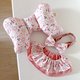 弥月弥月礼盒三件组【手工豆绒宝宝蝴蝶枕+双层荷叶公主围兜+宝宝发带】